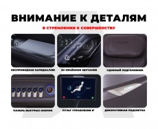- Противоскользящая панель размещения смартфона оснащена беспроводной подзарядкой