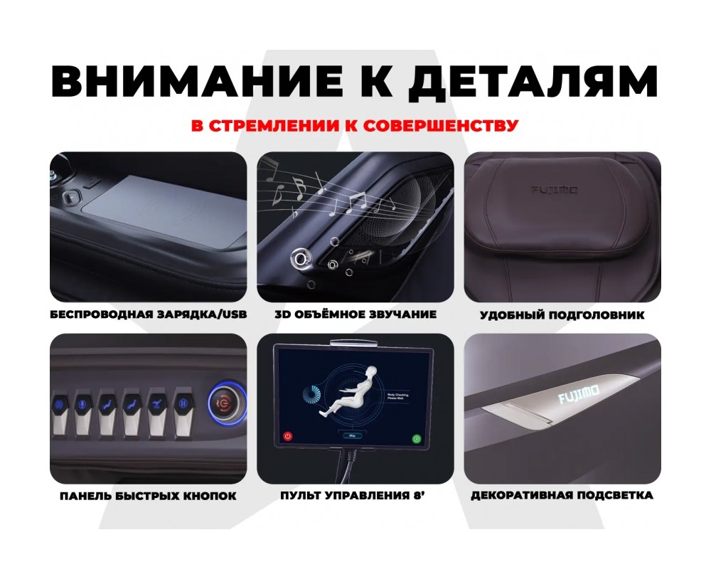 - Бинарная технология 8D DUAL CORE массажа реализована с помощью 2-х соматосенсорных 4D механизмов